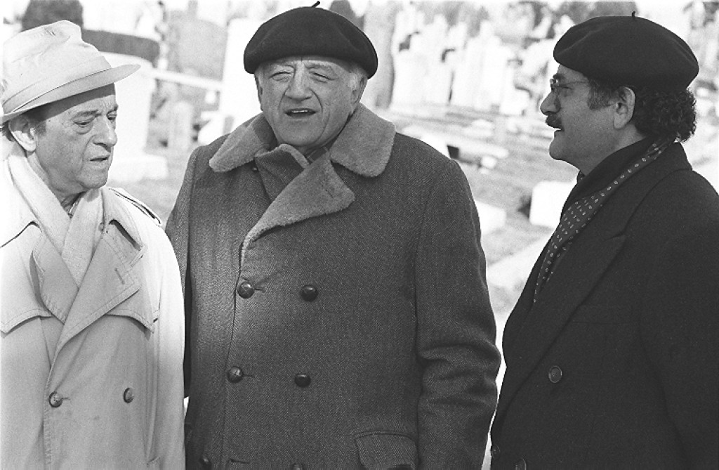Seymour Rechtzeit, Robert Abelson and Neil Levin. Mount Hebron Cemetery, Flushing, New York. The cemetery is home to the grave of Boris Thomashevsky and many other important Yiddish theater figures.
