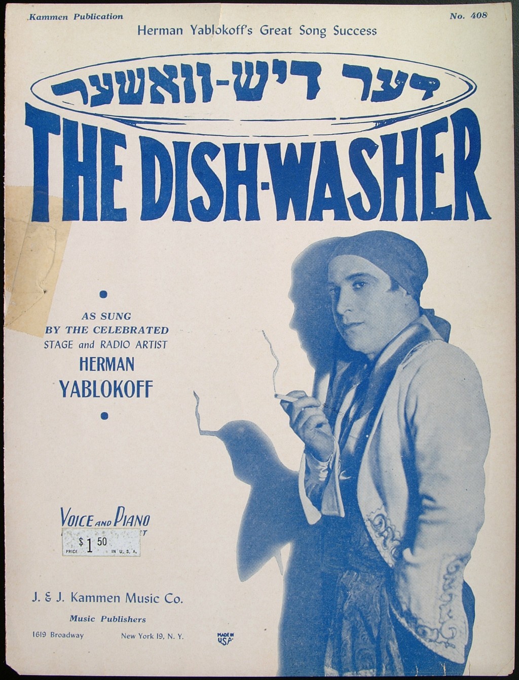 Sheet music cover for Der disvasher featuring composer Herman Yablokoff in costume.