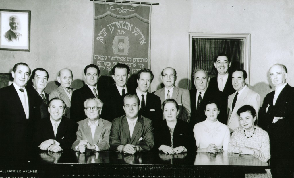 Seymour Rechtzeit and Mirriam Kressyn (front, center) with the board of the Yiddish Actor's Union. Date unknown.